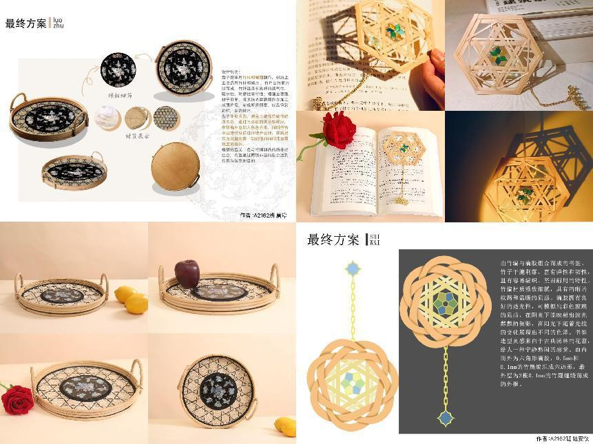学生创意、制作的竹编再生设计作品