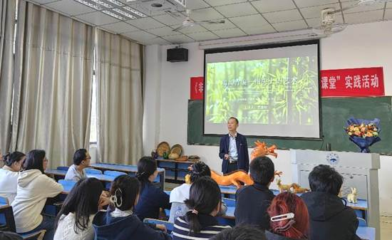 艺术学院历年来注重非遗保护工作,为文旅部中国非遗传承人研培院校,在实践教学中强调地方非遗文化导入课堂,支持非遗传承人参与学院的实践授课中来,实现课堂与地方文化的接轨。艺术学院一直注重打造非物质文化教学与艺术创新科研融合的有效平台,形成培养非遗传承人才与创新型人才融合培育基地。所以,本次活动聘请了瑞昌竹编省级非遗传承人雷保红为竹编技艺导师,雷保红老师为环境设计专业学生进行了精彩的非遗竹编传承课程讲解,从瑞昌竹编的发展、制作工序,以及作品风格演变等内容向同学们做了详细介绍,旨在让同学们近距离接触和学习非遗文化,理解体验国家级非遗江西瑞昌竹编的独特魅力。