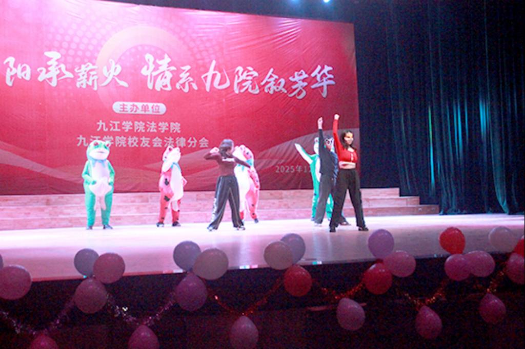 2025 年 12 月 14 日晚,九江学院法学院携手九江学院校友会法律分会在大礼堂隆重举办“法聚浔阳承薪火 情系九院叙芳华”主题晚会。党委委员、副校长查振华莅临观看,学生工作处副处长张堑、法学院党政领导、九江学院校友会法律分会代表及师生代表齐聚一堂,共赏这场兼具青春朝气与温情底蕴的文艺盛宴。