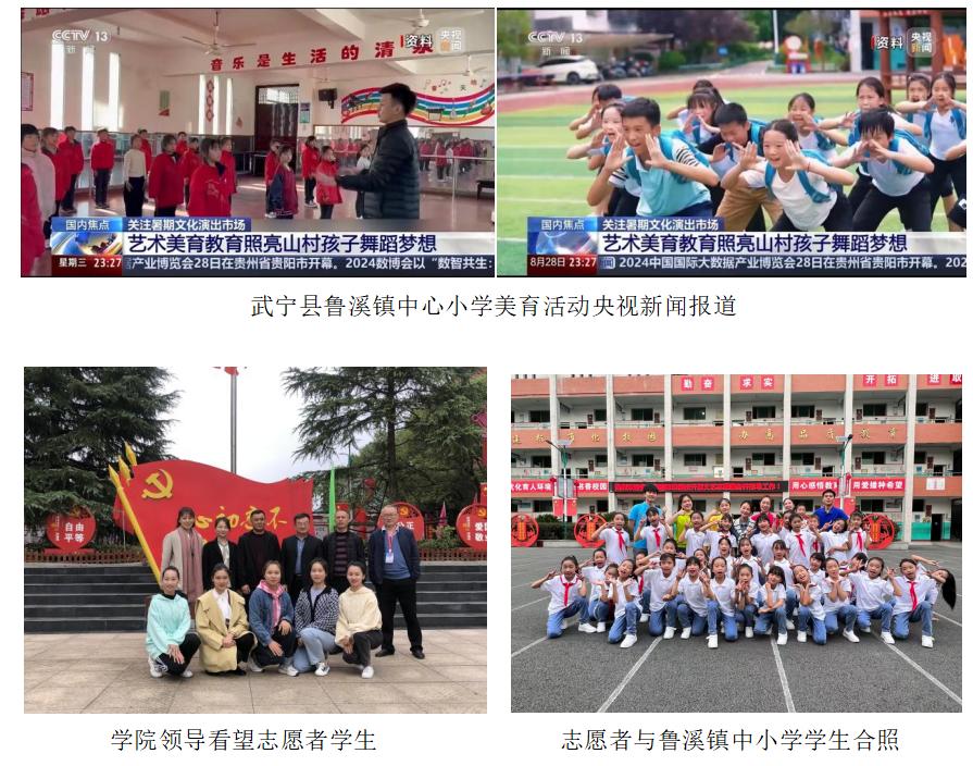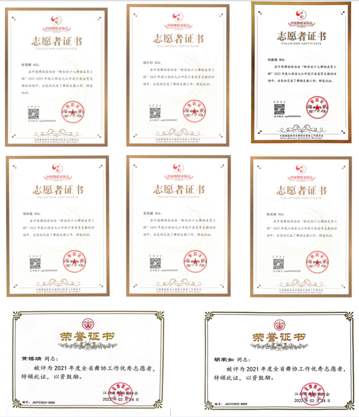 本专业依托中国舞蹈家协会江西省首个“新农村舞蹈美育工程项目”累计输送志愿者96人次,为赣北地区56所乡村学校建立舞蹈美育课程体系。2024年艺术学院被授予中国舞蹈家协会新农村舞蹈美育工程志愿者服务实践单位,16名志愿者师生荣获中国舞蹈家协会“优秀志愿者”,25名学生荣获江西省舞蹈家协会“优秀志愿者”,12名学生荣获江西省“优秀支教生”等荣誉称号。近年来,师生志愿服务学校均获得多项国家级、省级美育奖项,此举为提升舞蹈师范学生的教学能力以及乡村教育情怀的培养,起到了重要作用,同时也探索出了一条适合九江地区乡村基础教育学校舞蹈美育实际需求的新道路。