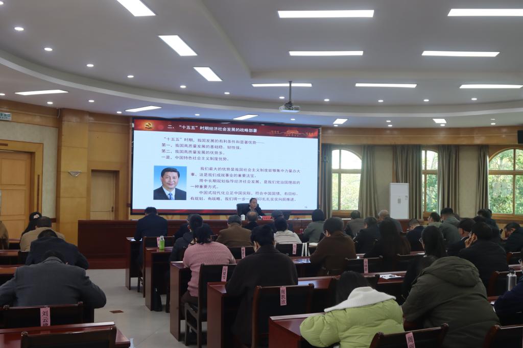宣讲中,王殿元紧密结合学校发展实际与科研人才职责使命,从三个维度系统阐释了全会精神的核心要义。他通过“十四五”时期我国在经济总量、科技创新、生态环境、国防建设等方面取得的重大成就与详实数据,深入解读了中国式现代化所蕴含的制度优势与发展韧性,强调高校作为人才培养、科学研究和文化传承创新的重要阵地,必须自觉对接国家战略需求。围绕“十五五”时期承前启后、夯实基础的关键作用,他重点分析了全会关于现代化产业体系建设、高水平科技自立自强、区域协调发展、绿色低碳转型等方面的重要部署,联系学校学科特色与研究优势,指出了在新能源、新材料、人工智能、乡村振兴等领域的潜在机遇与发展路径。最后,他强调,必须始终坚持和加强党的全面领导,领导干部要提升战略思维能力与治理效能,科研平台负责人要聚焦关键核心技术组织协同攻关,青年博士要勇担科研创新重任、发扬科学家精神,共同为学校内涵式发展与国家现代化建设赋能助力。