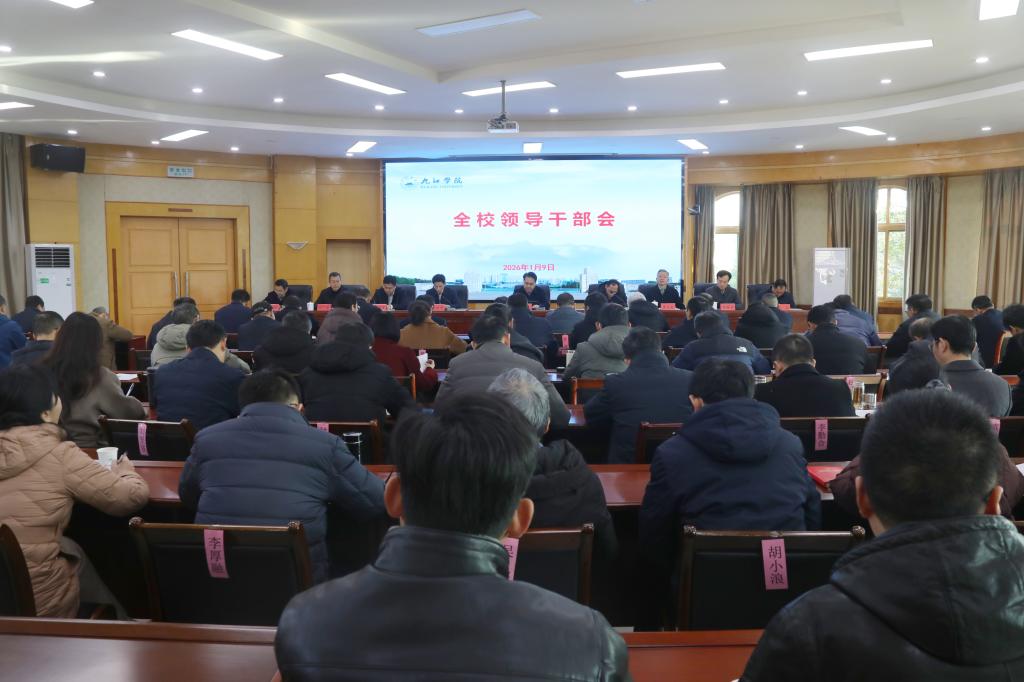 1月9日上午,学校在行政楼四号会议室召开期末领导干部会议,全面总结2025年工作,并就寒假及新学期相关工作进行部署。校党委书记李明斌出席会议并讲话。会议由党委副书记王殿元主持。党委委员、副校长查振华、鲁卫东、雷志强、吴维勇,党委委员刘平、杨杰、肖国丰出席会议。