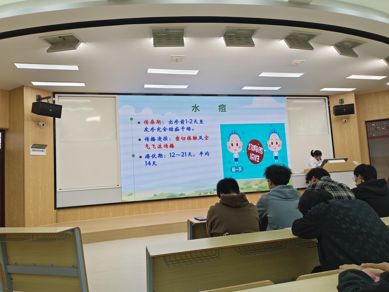 为筑牢校园健康防线,提升学生传染病防控意识,11月5日,校医院联合旅游学院、经济学院、建工学院、材料学院分别在竞知楼阶四教室、望庐楼报告厅开展秋冬季传染病预防专题讲座,来自各学院400余名学生现场聆听。