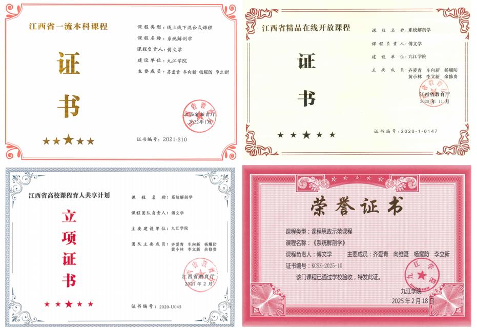 2020年 :获评省级精品在线开放课程,2021年 :获评江西省高校课程育人共享计划课程线上教学体系日趋完善。