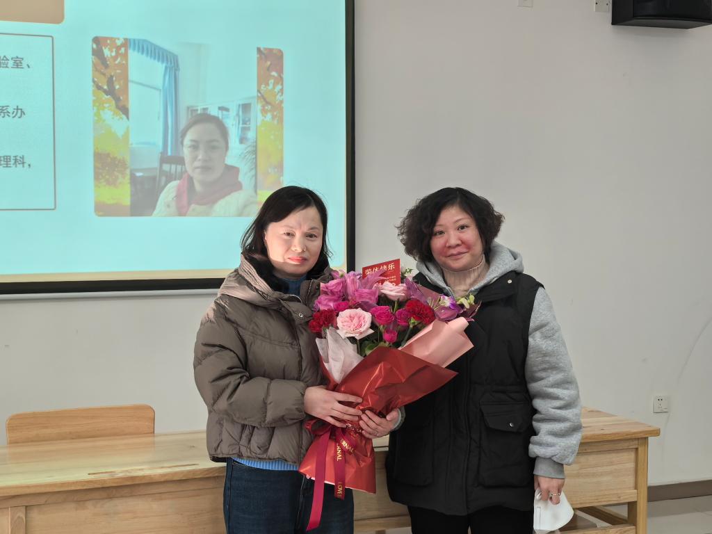 随后,伴随着热烈的掌声,学院教师代表为三位退休教师送上了饱含敬意与祝福的鲜花,感念他们多年来的辛勤付出。