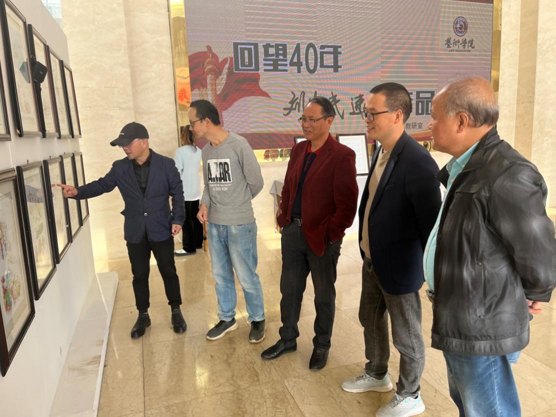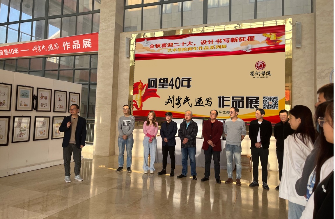 在全面学习贯彻党的二十大精神之际,艺术学院于11月3日组织开展“喜迎二十大、艺起向未来”设计专业系列展览活动之“回望40年——刘安民速写作品展”展示活动。艺术学院党政领导王春生、虞斌、沈扬、欧阳时来及相关设计教研室主任、科室主任出席开幕仪式,出差在外的张甘霖副院长对此次展览开展表示祝贺。开幕式由学院党委委员、环境设计教研室主任吴小亮主持。