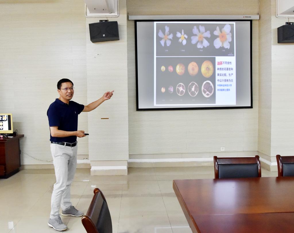 9月2日,应江西油茶研究中心邀请,国家杰出青年科学基金获得者、教育部长江学者特聘教授、华中农业大学郭文武教授来校作学术报告,华中农业大学伍小萌博士、解凯东博士、博士生任杰同行。副校长杨耀防热情接待了郭文武一行,并出席学术报告会及交流座谈会。科研处处长汪鑫、副处长刘坚强,油茶中心主任王春娥、副主任宋英培以及油茶中心全体教师等参加了报告会。