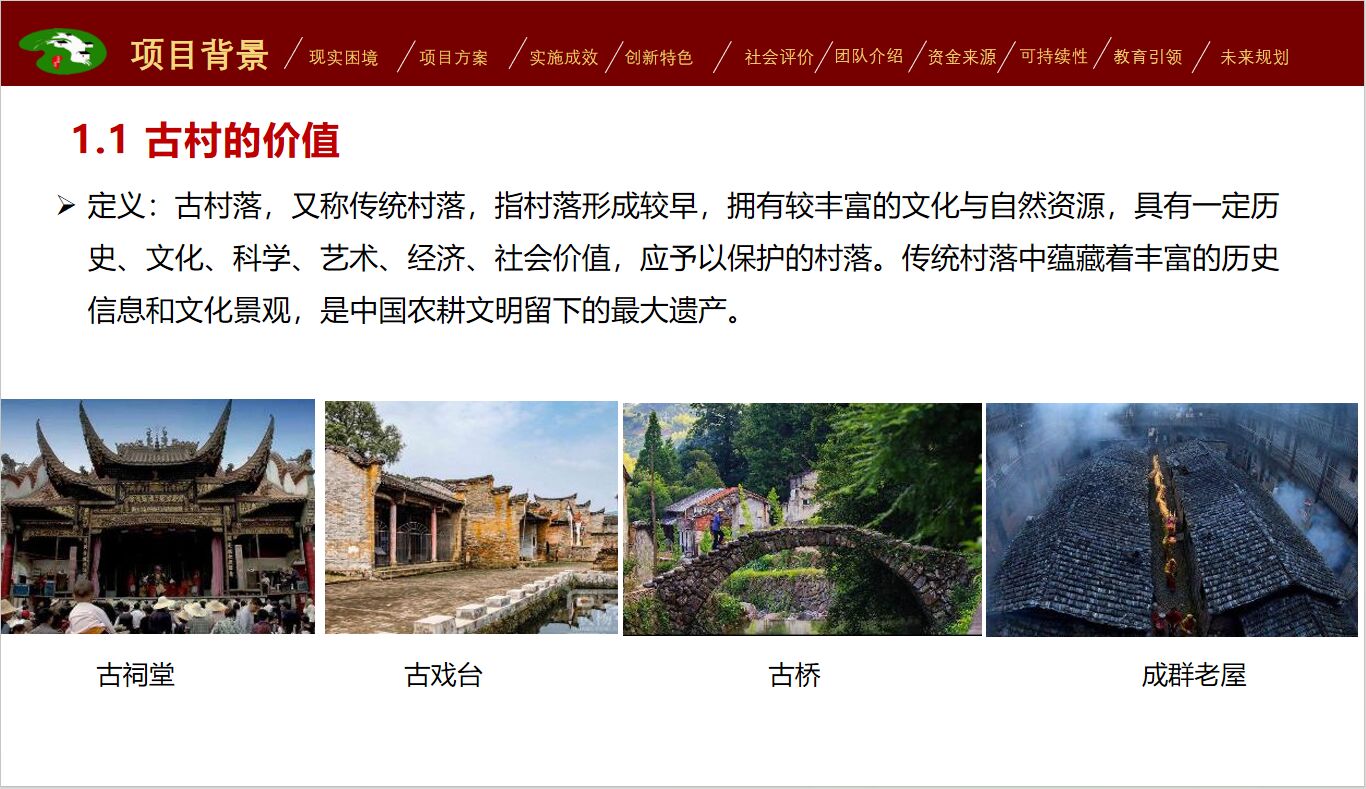 2017年,我们成立江西数字古村服务社团,启动“古网金来”项目,经过了8年的实地调研、资源整合和运营实践,我们探索构建了线上+线下赋能、四大举措和九大盈利机制的古村保护与价值创新模式,通过搭建平台整合资源,内容创新聚人引流,知识输出实现价值提升,文创激活促进传承发展。