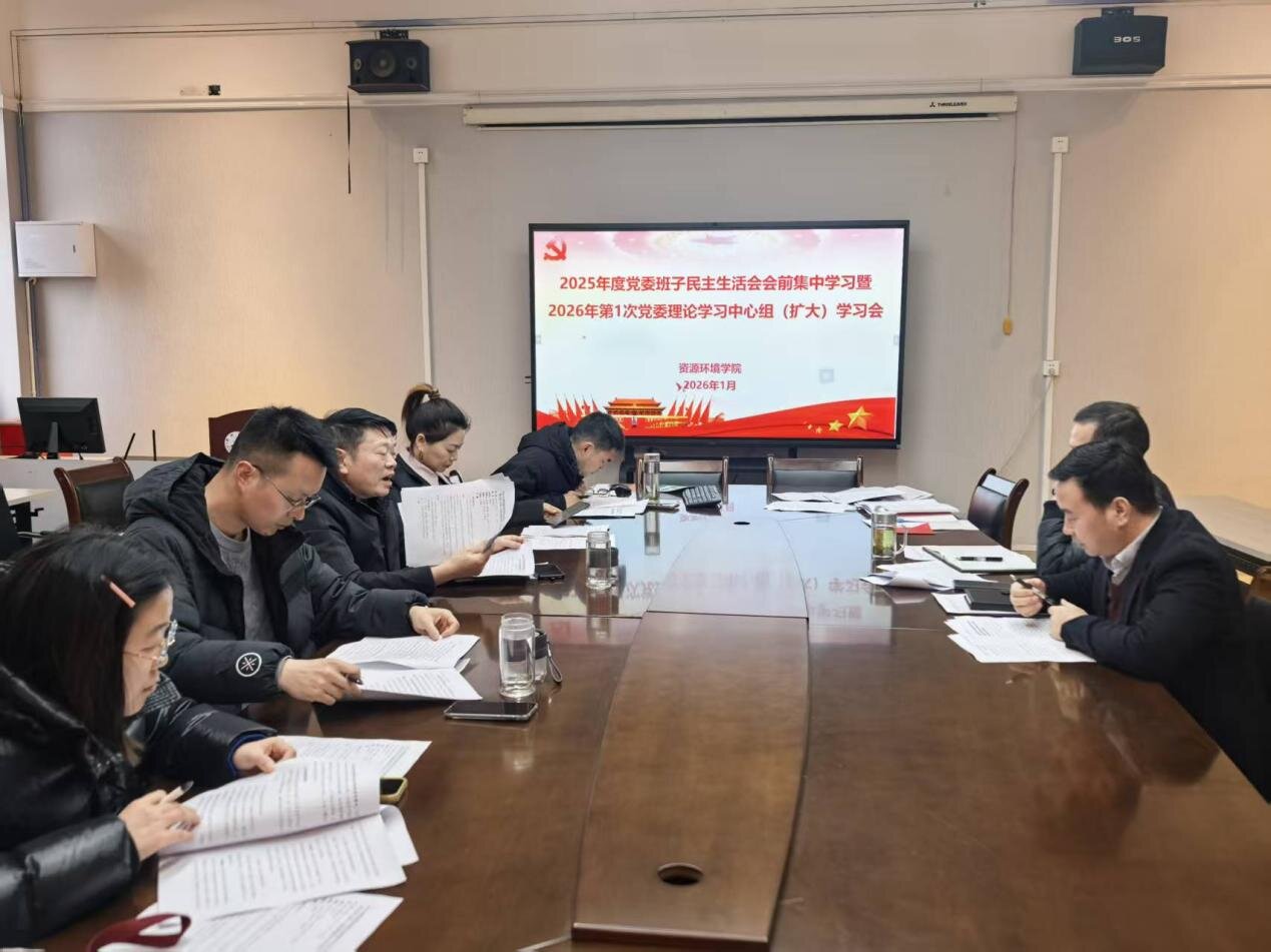 为高质量开好2025年度民主生活会,1月19日上午,资源环境学院党委在厚德楼709会议室召开会前集中学习暨党委理论学习中心组(扩大)学习研讨会。党委书记徐常龙主持会议,党委理论学习中心组成员出席会议。