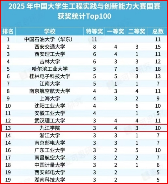 (六)九江学院在教育部A类竞赛中进入国家队第一方阵