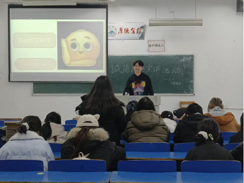 随着期末考试临近,为引导学生树立诚信意识、端正考风学风,2025年12月18日,文学院组织开展“以文立身,以信应考”诚信应考主题教育活动,将人文精神与学术规范深度融合,激励学子恪守学术诚信,书写青春担当。