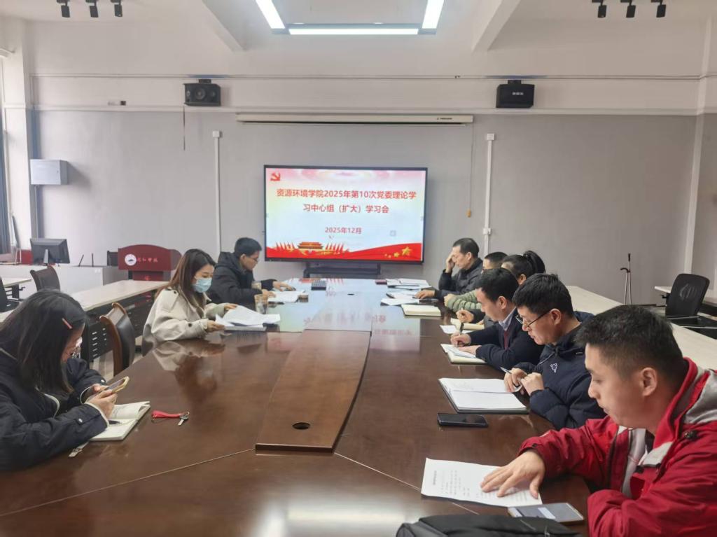 2025年12月22日上午,资源环境学院党委在厚德楼709会议室组织召开理论学习中心组2025年第十次(扩大)学习会,专题学习贯彻中央经济工作会议精神。学院党委副书记翟佩佩主持会议并作总结讲话。学院党委理论学习中心组成员参加会议。