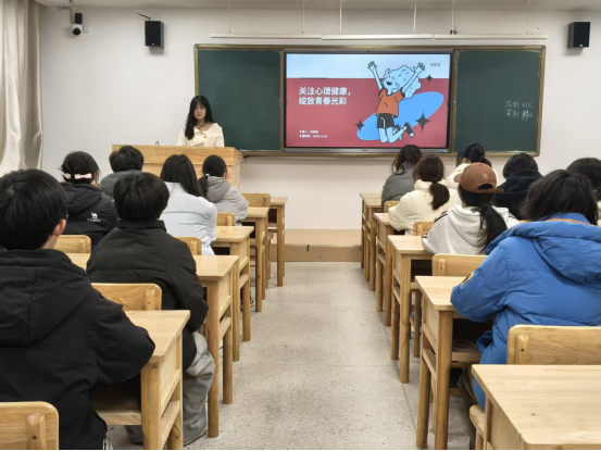 班会现场,各班主讲人聚焦大学生常见情绪困扰,系统拆解心理健康认知要点,帮助学生清晰认知自身心理状态。同时,从科学调节技巧、集体支持体系搭建、自我关怀实践路径三方面细致讲解,为同学们提及时采取调节不良情绪的实用方法。同学们认真聆听,不仅了解到心理困扰普遍存在,更深刻理解了接纳自我、关爱自我的重要意义。
