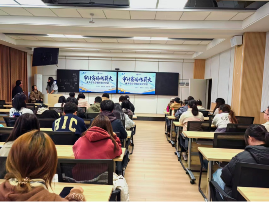 分享会由审计案例拓展社社长开场主持,在社长对学院审计赛事佳绩的简要介绍后,分享会正式拉开帷幕,全程分为四个核心环节层层推进。比赛介绍环节,三位优秀的学长学姐结合参赛经历,对福思特杯精英挑战赛的考察侧重点展开细致讲解,从赛事报名流程到评审标准,让同学们对审计赛事有了系统性认知;备赛经验分享环节,学姐学长们分享了资料搜集的渠道、团队分工的技巧与时间规划的方法,并特别强调备考阶段要牢牢夯实专业基础,不仅要认真跟进每一节专业课的学习,还要高度重视注册会计师审计相关知识的积累,为比赛筑牢理论根基,毫无保留的干货分享让在场同学心潮澎湃,手中记录不停;题型讲解环节是本次分享会的亮点,学长学姐向我们展示精心准备的练习题,针对审计比赛中的常见题型、易错考点进行逐题拆解,结合实际案例介绍解题思路与答题技巧;答疑解惑环节中,同学们围绕备赛难点、团队协作、赛事心态等问题积极举手提问,三位学子耐心细致地逐一回应,现场互动氛围热烈,不少同学表示心中的疑惑得到了清晰解答。