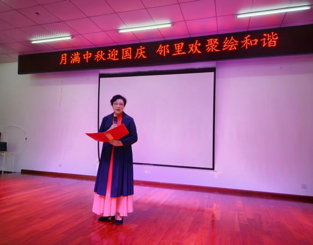 本次活动由龚胜红主持,校关工委执行主任吴桃娥作庆双节活动致辞,代表学校关工委和社区,向在座的各位领导、各位来宾,以及全体社区居民们,致以最诚挚的节日问候和最美好的祝愿!。吴主任在致辞中讲到我们关工委走进社区,联合举办庆祝活动,意义非凡。这不仅是向祖国母亲献上我们最深情的祝福,也是借此机会弘扬中华优秀传统文化,丰富社区居民的精神文化生活,更是营造尊老爱幼、邻里互助、文明和谐的社区氛围的重要举措。关工委一直致力于促进青少年的健康成长,今天的活动也有一些孩子们的参与,希望他们能在欢乐的氛围中感受家国情怀,传承文化薪火。