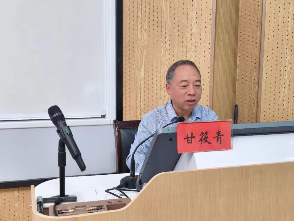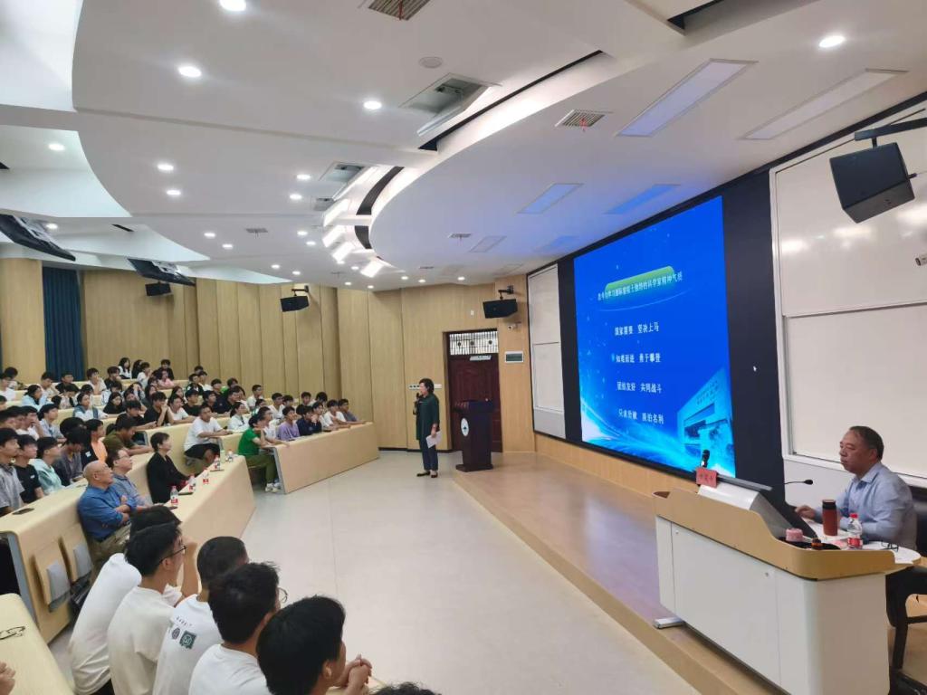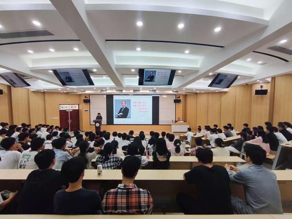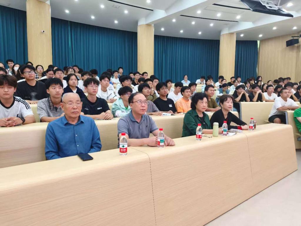 2025年10月15日下午,在学校竞知楼阶二智慧教室里传来阵阵掌声,同学们正在认真聆听甘筱青教授关于《爱国创新求实 奉献协同育人--缅怀潘际銮院士,发扬科学家精神》的专题讲座。离退休人员工作处负责人以及校关工委委员参加本次讲座活动。活动由校关工委执行主任吴桃娥主持。我校首批研究生代表和分别来自材料科学学院、电子学院、机智学院的本科生代表近220人参加。