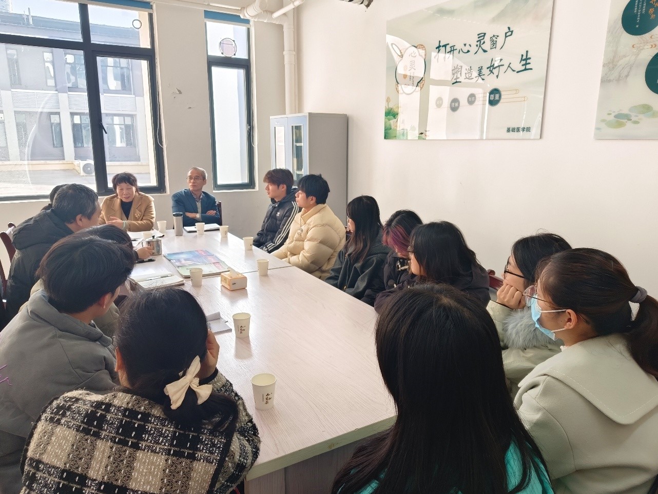 为进一步加强大学生心理健康教育工作,充分发挥“五老”的优势,助力学生健康成长。2025年11月19日,九江学院关工委联合基础医学院,将“心灵驿站”活动搬进紫薇园2栋“一站式”学生社区。校关工委副主任张进,“五老”宣讲团成员邓燕、基础医学院负责人及部分师生代表参加此次活动。